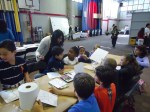 April 18th! ECO FAIR day! I have to go back and cover THIS! 🙂 We set up shop in the lower multipurpose gym – booths everywhere to celebrate Eco Week, and wow – we had in mind to do the same project we did at the Cherry Blossom Festival in Washington D.C., taking recycled bottles and turning into wind socks…however….the bottles were taken to be recycled! LOL…Good and bad, sooo..plan B!