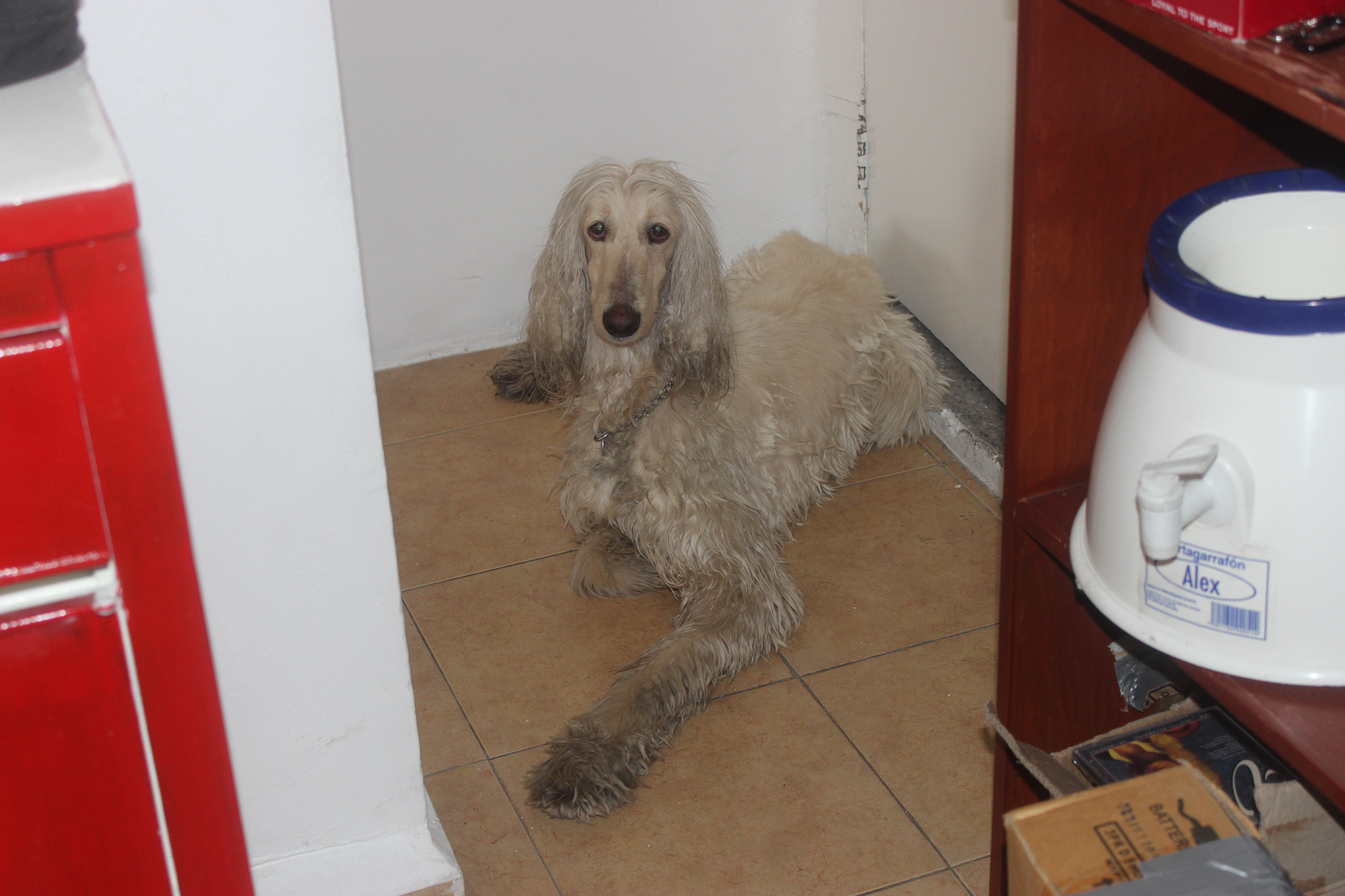 I called Jessica from the Middle School, arranged for Lilia to hold my library meeting, talked to Gabriela, who was inquiring with Mr Williams on the best course of action, and finally, through Jessica’s keys, and Carlos’ directional know how, Carlos drove me back to my apartment, in Jessica’s car, with a newly found, but quite dirty, Afghan in tow. She patiently and quietly waited in front of my apartment door, as if asking, What next?!