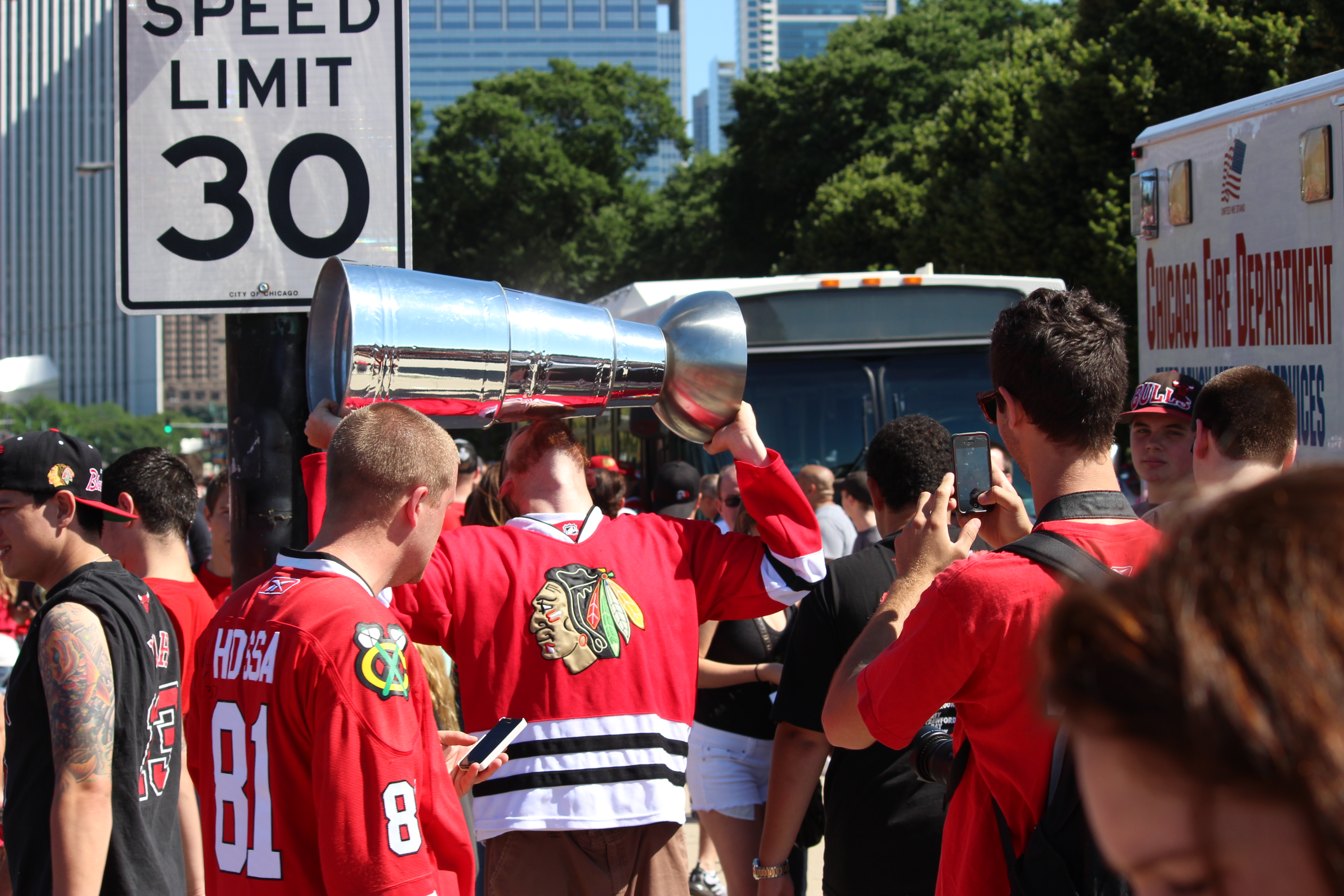 To start off the day, BLACKHAWKS celebration! Yes, today was the day of the parade, and all had been warned of the hassle it would be with shuttles to and from the conference. As usual, I walked across the street from the hotel and began to see mass numbers, the like I was still amazed at.