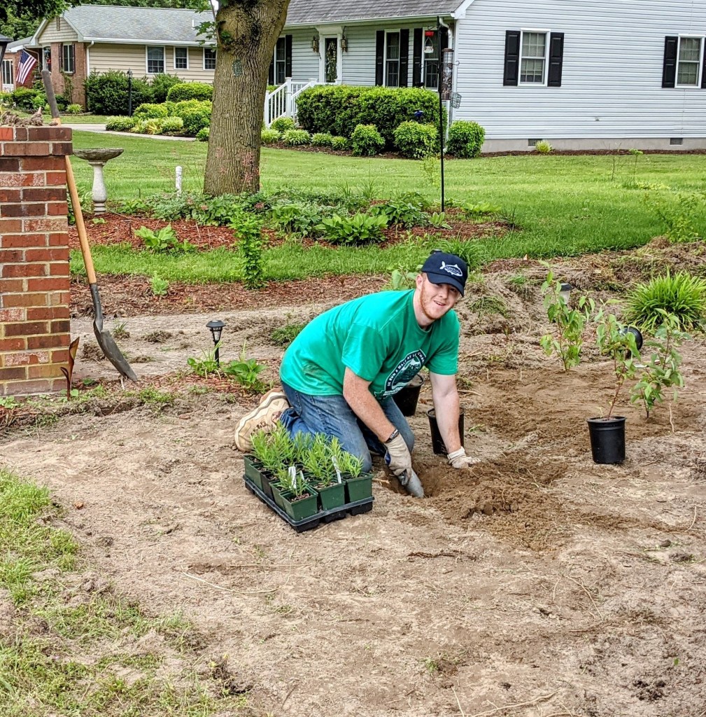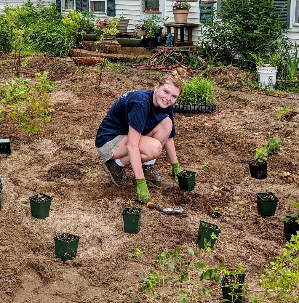 Lisa Wool, Sydney Williams, Max Horan, Will Meadows, Robin Weber (Americorps Member) and Meagan Lukehart (Also a member of the Dean’s List of Salisbury University in 2020!) descended miraculously at my residence and worked like crazy, in the dead of the heat to take mounds of sod out and replace with hundreds of pollinator plants.