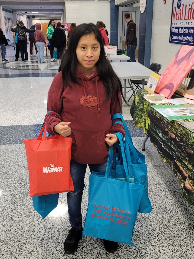 Don’t be fooled, the sheer success of moving the Festival of Words from Spring to Winter, and organizing a plentiful collection of artists, food and refreshments and the social interactions among so many age groups did not come without the guidance of director Andrea Rashbaum, the Festival of Words Organizing Committee, and the support of the Delaware Library Association, strongly supported by the sponsors that make this one, insightful Delaware festival for teens the exciting event it is. Months of outreach, planning, organizing and creativity are rewarded as you see in every possible corner and classroom, attendees finding a space they belong to read, collect literary bling, hoard autographs, selfies, and countless bags of books; all memories that continue to emphasize the power of literacy, libraries, and learning.