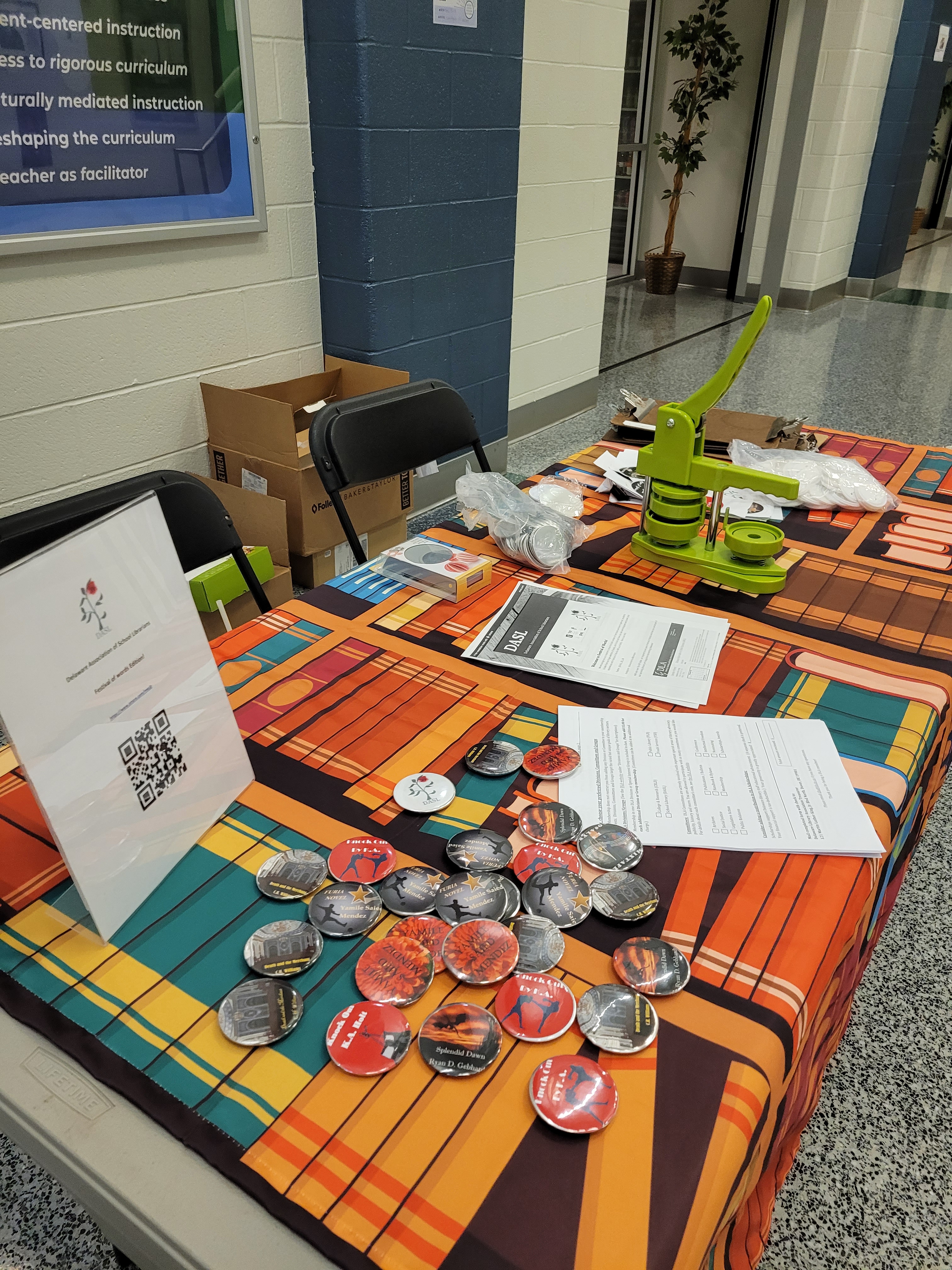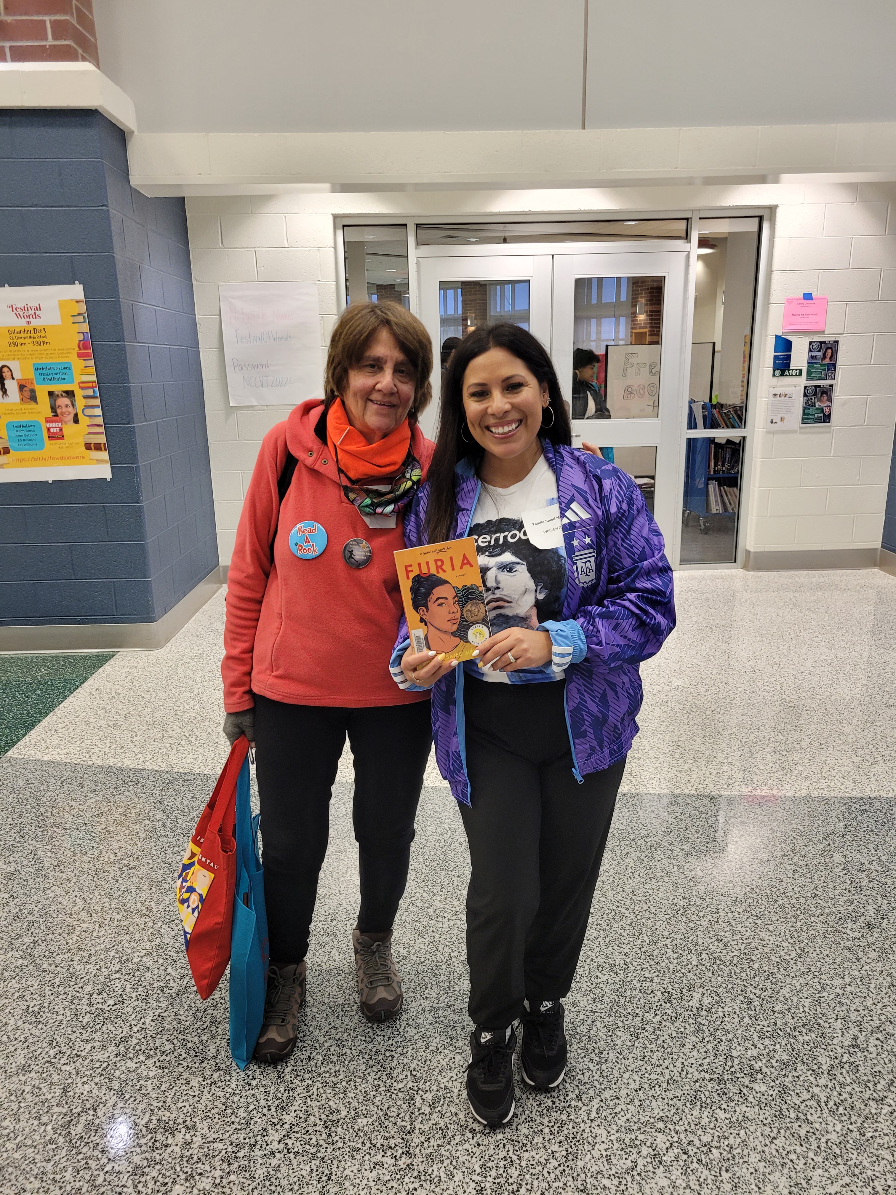 Artistry in the form of bracelets for purchase that supported individual countries, a workshop creating letters from metal mediums, practicing monologues, to designing buttons represent attendee’s own personal addictions to reading provided the wide range of where literacy could be found. Keynote author Yamile Saied Mendez empowered the excitement of the ongoing World Cup with women in futball and providing a look into her world of Argentina while becoming an author; keynote author K.A. Holt let loose and reinforced how poetry and characters can bring creativity to the forefront of everyone’s attention. The diversity of perspectives brought by authors such as Ryan Gebhart that combined architecture and writing, C.H. Williams illustrated world building within writing, the artistry of lettering from Jennifer Greer, diversity representation thanks to Deshanna and Trinity Neal, poetic monologues performed with Dr. Traci Curry, to the ins and outs of self-publishing with E.S.Rosaylnn, attendees were given the best gift of all, the gift of choice. Art again became the focus this year with the opportunities to bring student artwork to the New Castle County Imazine project and funnel talents into the technicalities of creating and working with the medium of Zines.