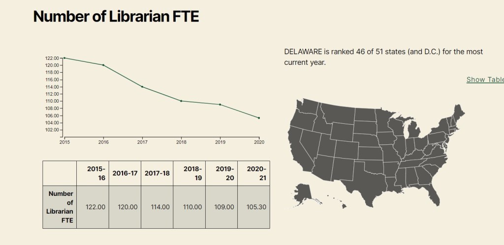 While Delaware does NOT have a ceritified librarian master’s degree program, we are lucky enough to have a certification program for the librarian track in the state out of the Univeristy of Delaware, and we are realizing, something has to give – to allow more: