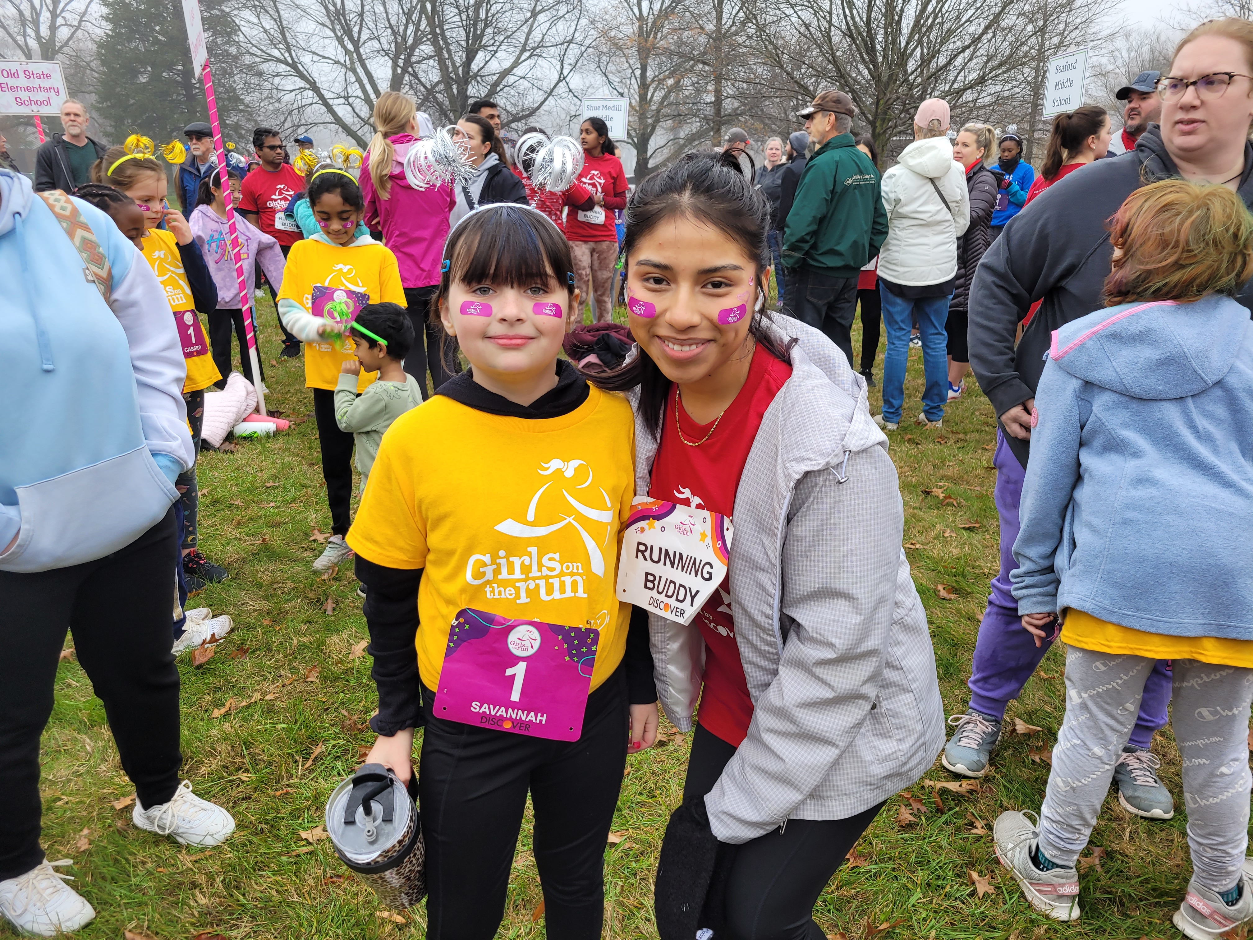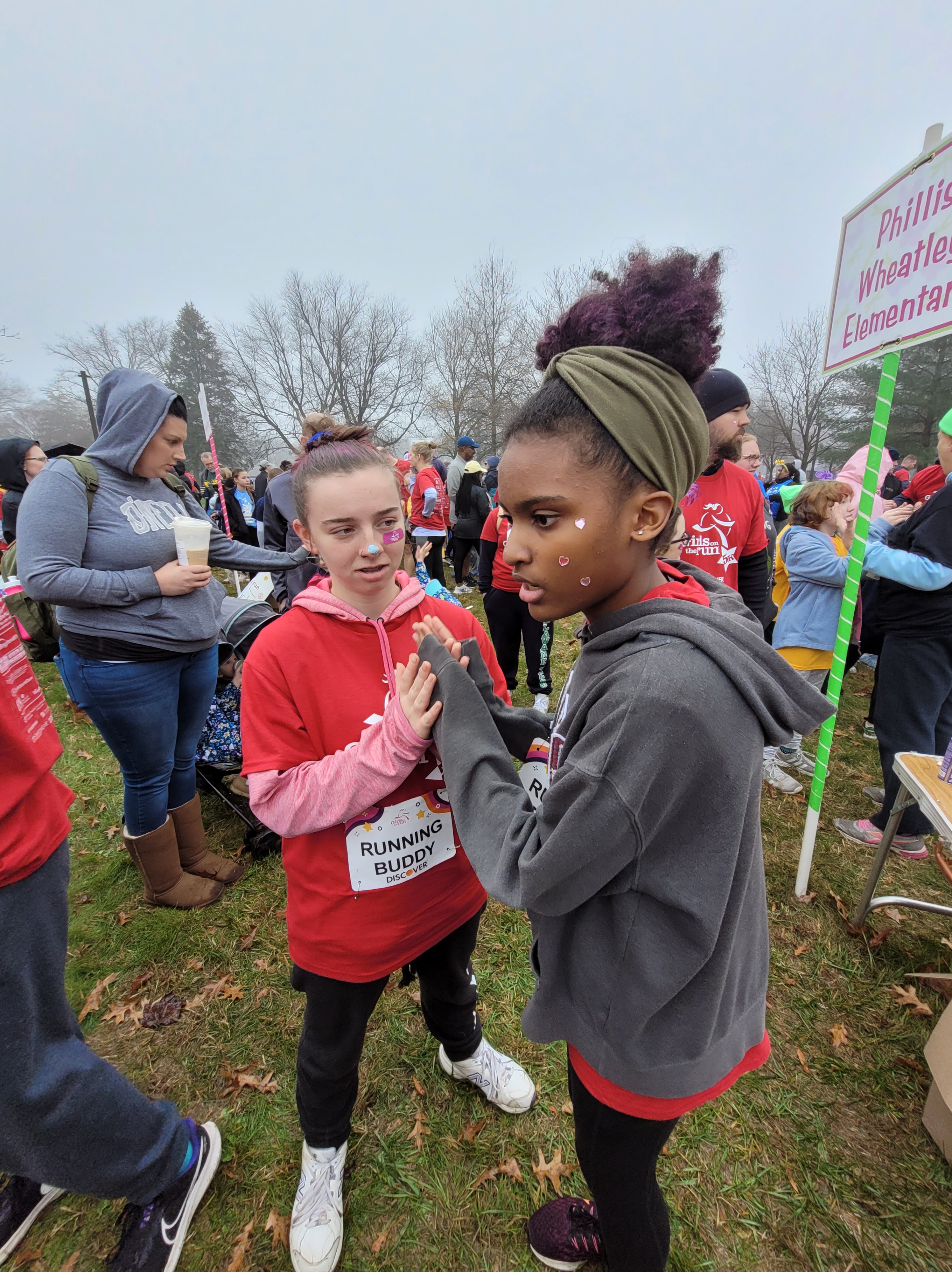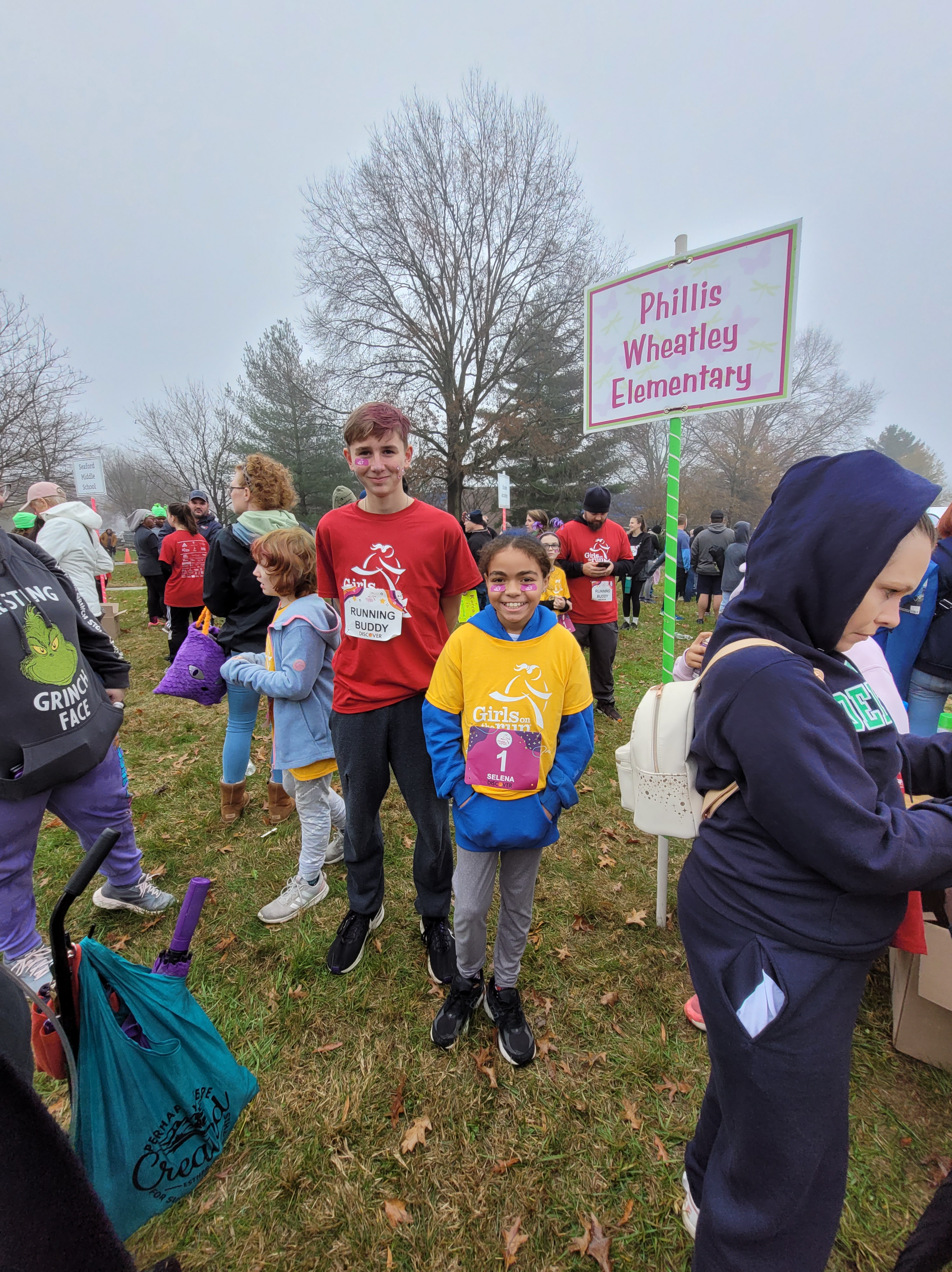 and walkers – that represented our community. Mayor Genshaw and daughter a familiar employee of Petco with his daughter, and in the middle of it all, I was witnessing our Woodbridge students -Logan, Suzely, Jasmine, Charlie, and Kaileb – and they were inspiring these young runners, and I felt were being inspired themselves. Between them all we represented the Girls Who Code Club, the Riff Literary Magazine, Middle School Track and Cross Country, as well as obviously the Phillis Wheatley Girls on the Run team.
