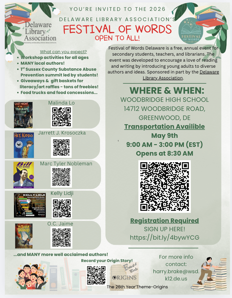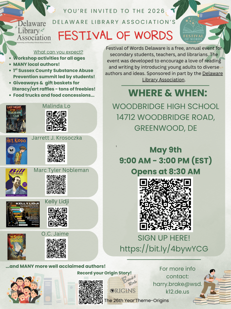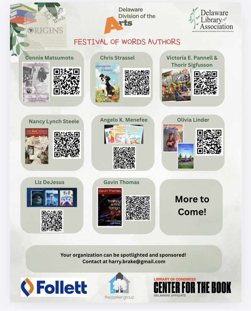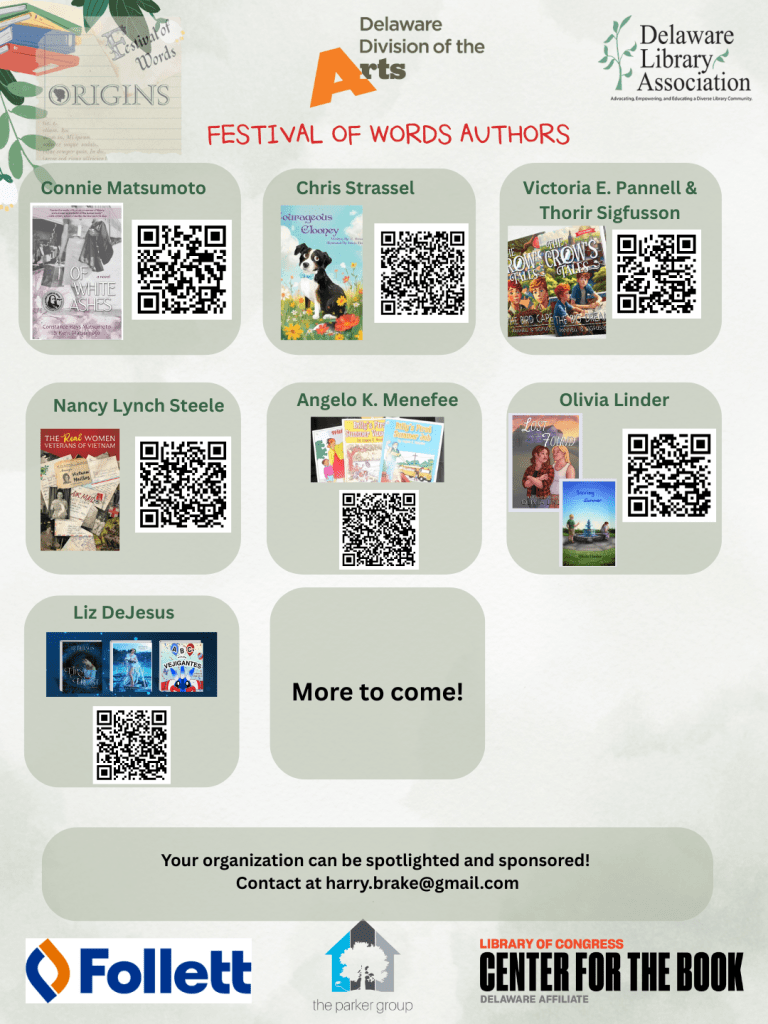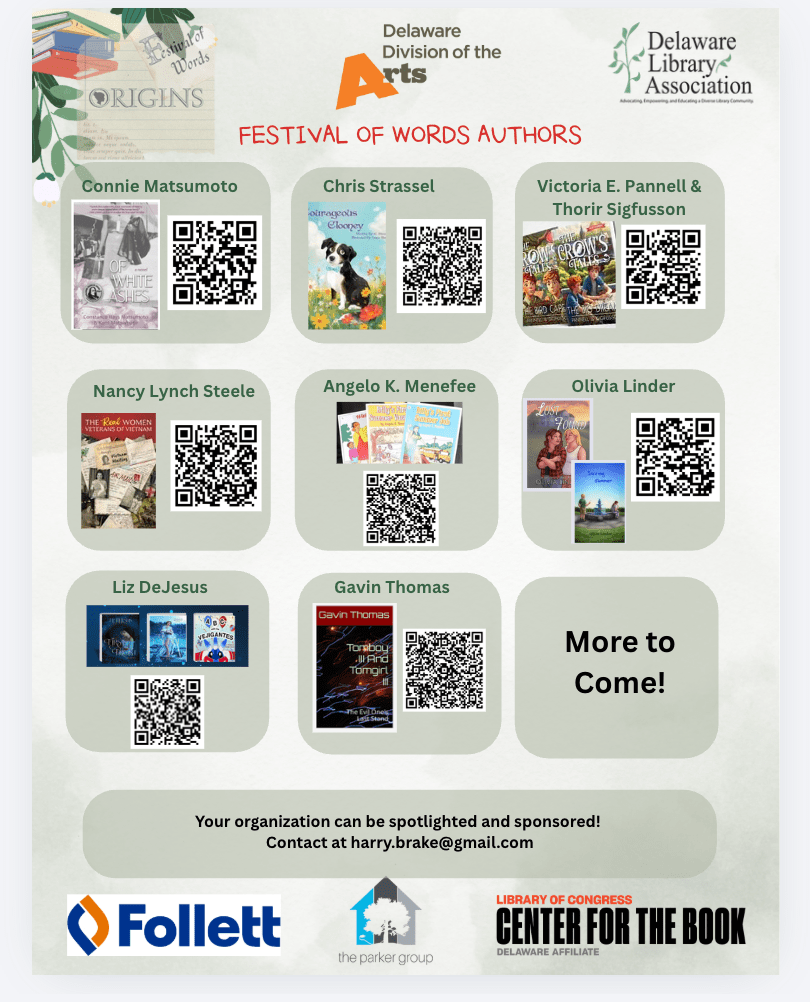 Ohhhhh, Literacy! Did you hear? THREE more Delaware published authors have been added to Festival of Words 2026 – and their workshops they are creating are PHENOMENAL!
