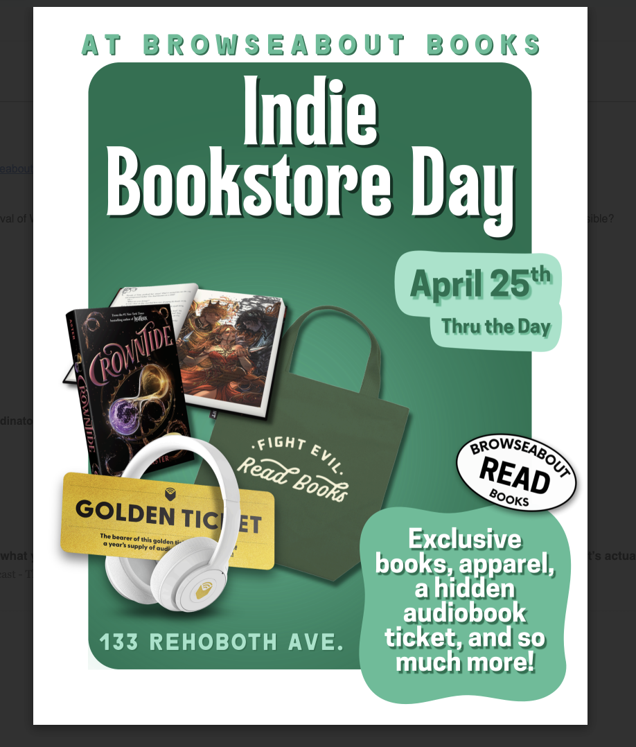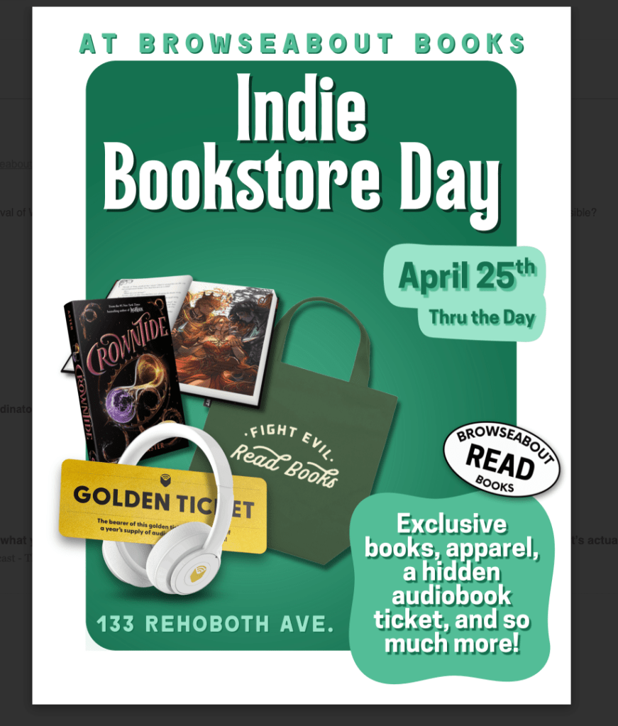 AS Browseabout and Huxley & Hiro were and ARE HUGE supporters of the Festival of Words, we need you to get out there and show them the love as a result so we can have this event bring school, public and other librarians and librarian workers together every year for a variety of needs. Supporting Independent Bookstores goes a long way to supporting our DE Indie (Independent) Bookstore scene, so we need you. it is advocating for literacy and we need you!