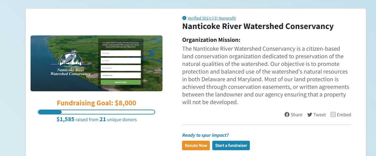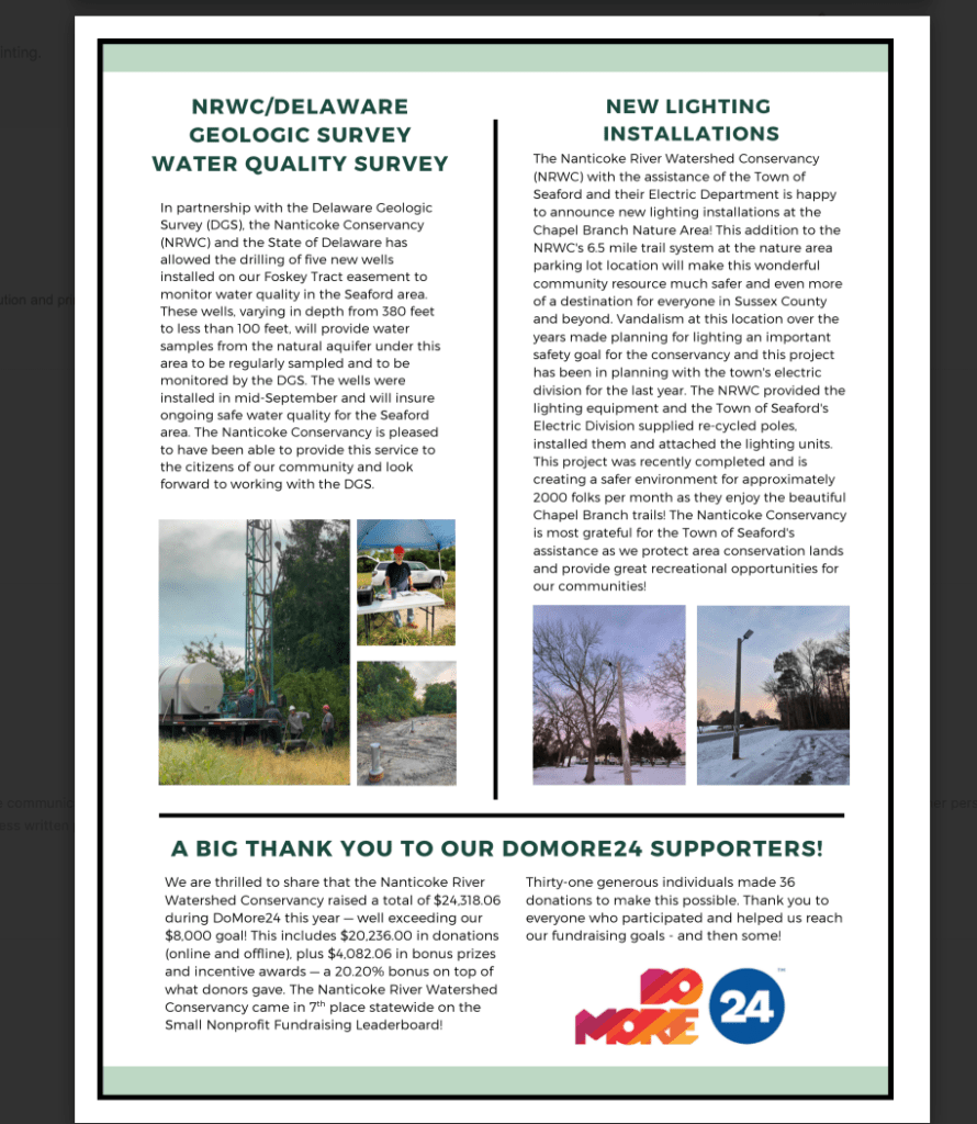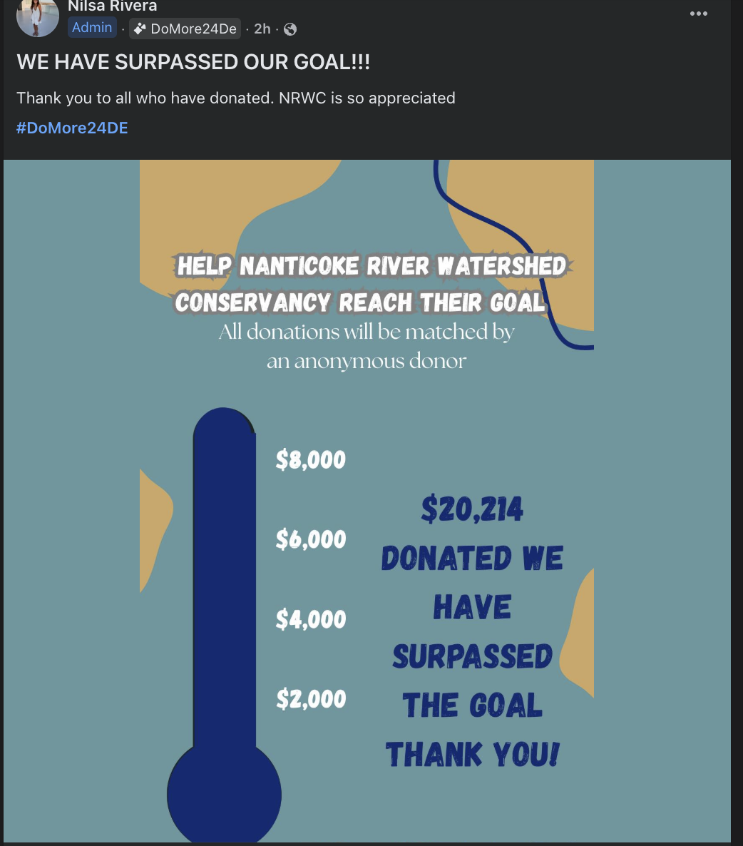 Nanticoke River Watershed Conservancy is participating in Do More 24 Delaware this year! Starting at 6 pm March 5th til 6 pm March 6th will be a 24 hour donation event.
