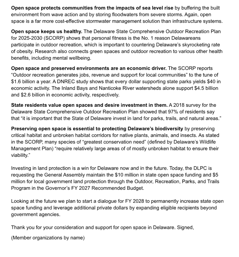 Your support keeps the care to maintaining open space, wetlands, and biodiversity in Delaware to keep the Delaware identity alive- thank you for your support. Didn’t get a chance to support the NRWC but would like to keep us supporting public protections of DE? Our How to support NRWC letter will be available in a few days, so stay tuned to this blog to see updates.