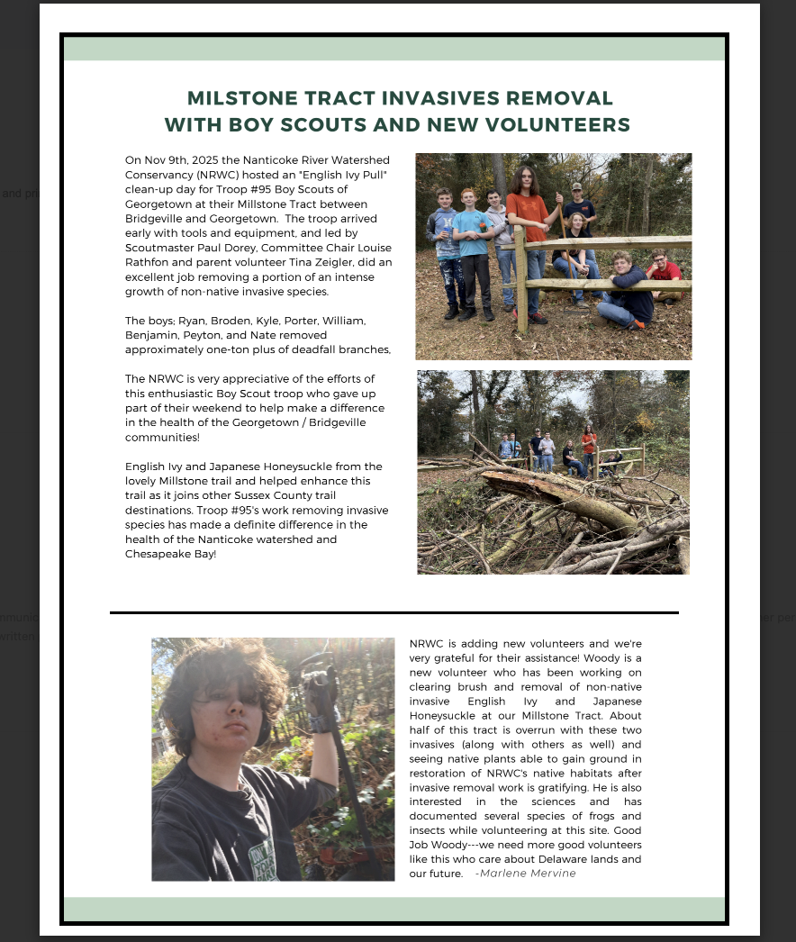 At this wonderful season of the year we all take time to pause and reflect on the many blessings we enjoy! Among the blessings that all of us in southwestern Sussex County and beyond can celebrate is the protection of well over 500 acres of conservation lands, saved forever for YOU through the work of the Nanticoke Conservancy! And we anticipate the addition of another 170+ acres by March 2022.