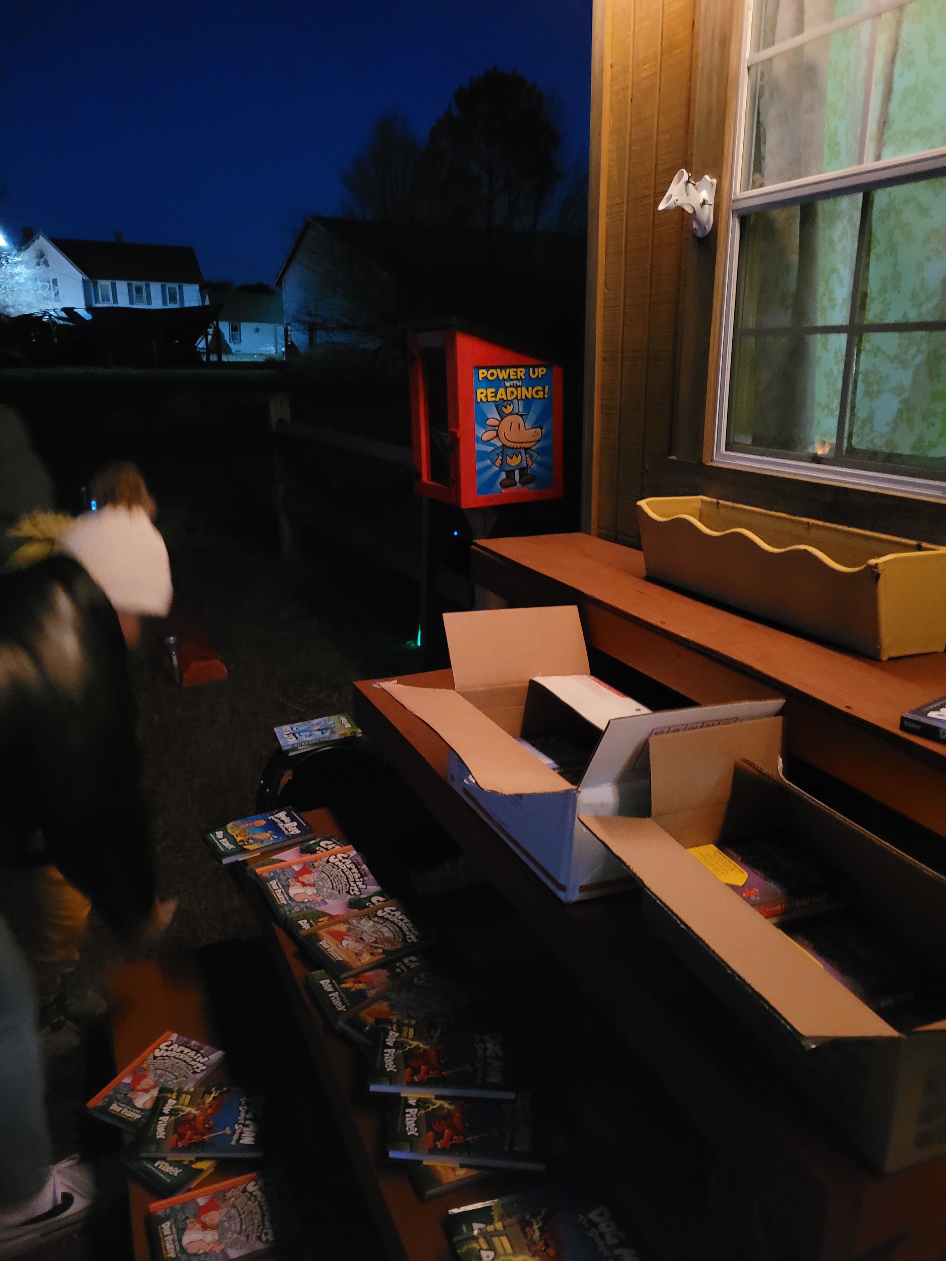 The fire pit outside that allowed hot dogs and warmth and conversation welcomed all that passed by. If you looked closed enough, you would see tribute to Punkin Chunkin as well. Thanks to the Little Free Library that Hopkins Brothers Produce established, and a grant through the Little Free Library that allowed books available to young readers this night, all visitors could benefit from what their library offered.