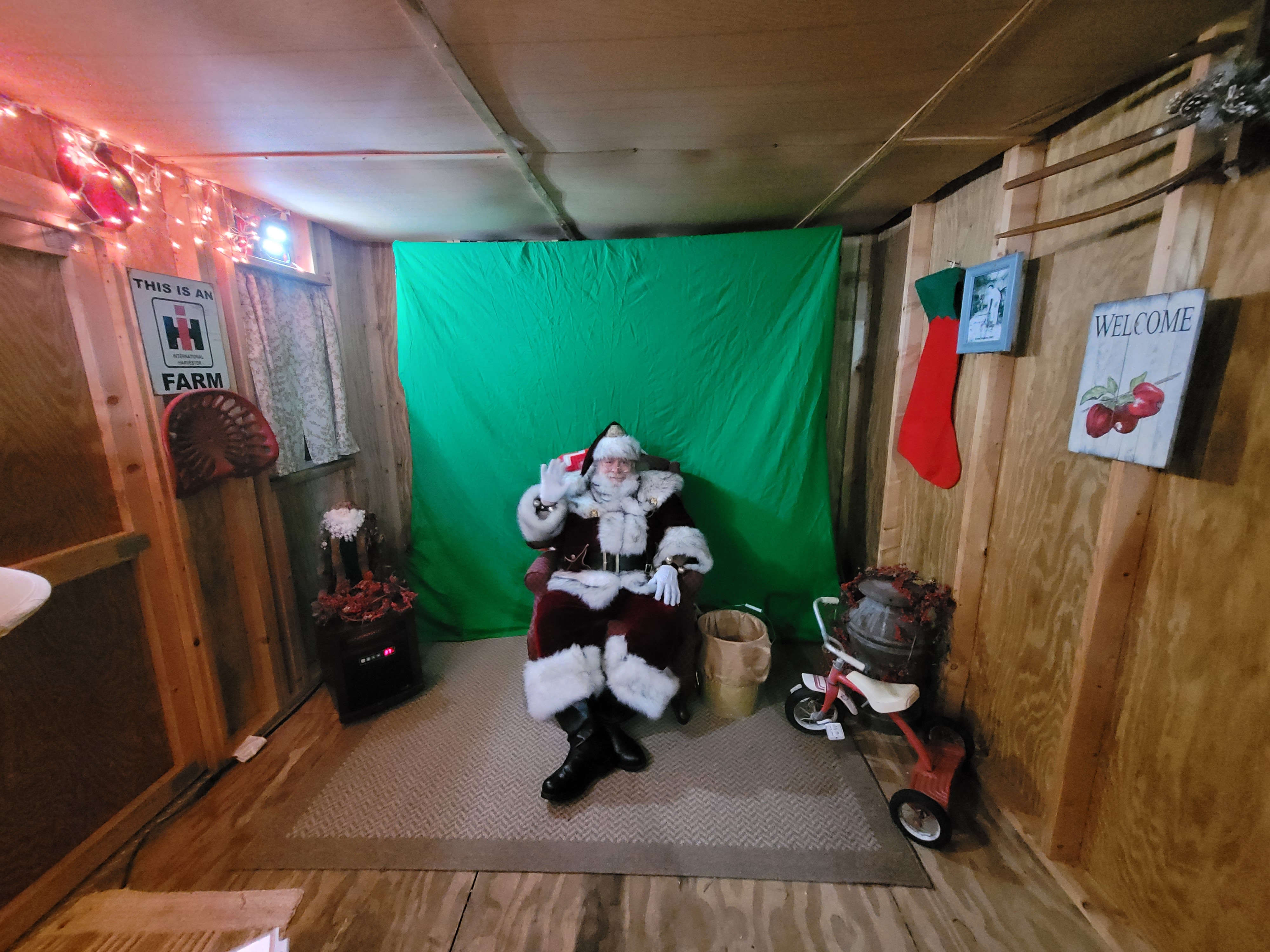 In being welcome to offer trying out the green screen behind Santa, and with the patience of Santa and Hopkins Brothers Produce, it worked and then, well some did not. it was a trial and error and not liking that some images did in fact come out and others did not, I was grateful that so much magic was already infused into this whole night and I would learn best steps forward next time that could only add to this evening.