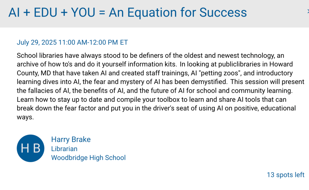 In May, Kathy Dulis, asked, “DSEA is holding a two-day conference in July (July 29th and 30th) on the campus of the University of Delaware. Do you have any interest in facilitating a session on AI and the impact it has on academics?” I thought hmmm, I haven’t dabbled into AI details for a while, why not?