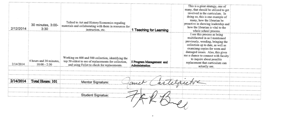 Reflections on a Media Specialist Disposition ALA/AASL Standards Mentoring Log Activities