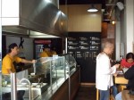 Although it was hot in front of the oven and grills, the service was amazing, the portions HUGE, and the place busting at the seams. Thew wood interior goes great with the plain concrete finish, and the concrete looks cleaner than cement should look, just an overall clean look to the whole place. I love the fact that dogs are allowed in and there was no problems, it seemed as if all the dogs were quire content among the bustling occurring. Next door, tons of coffee, a bakery and more seating and a very comfortable spot.