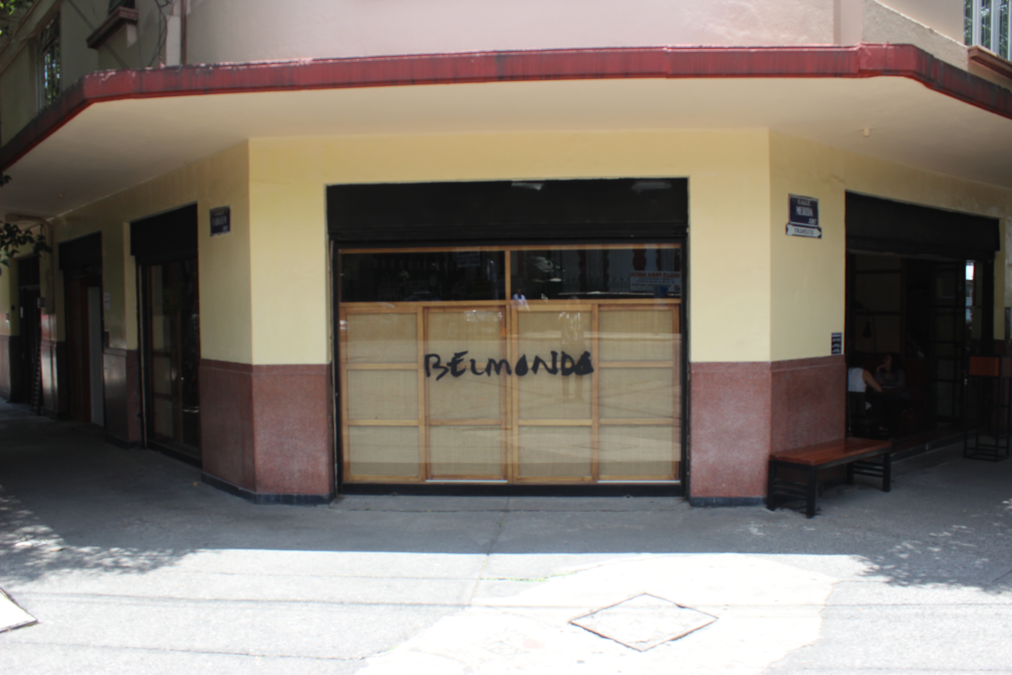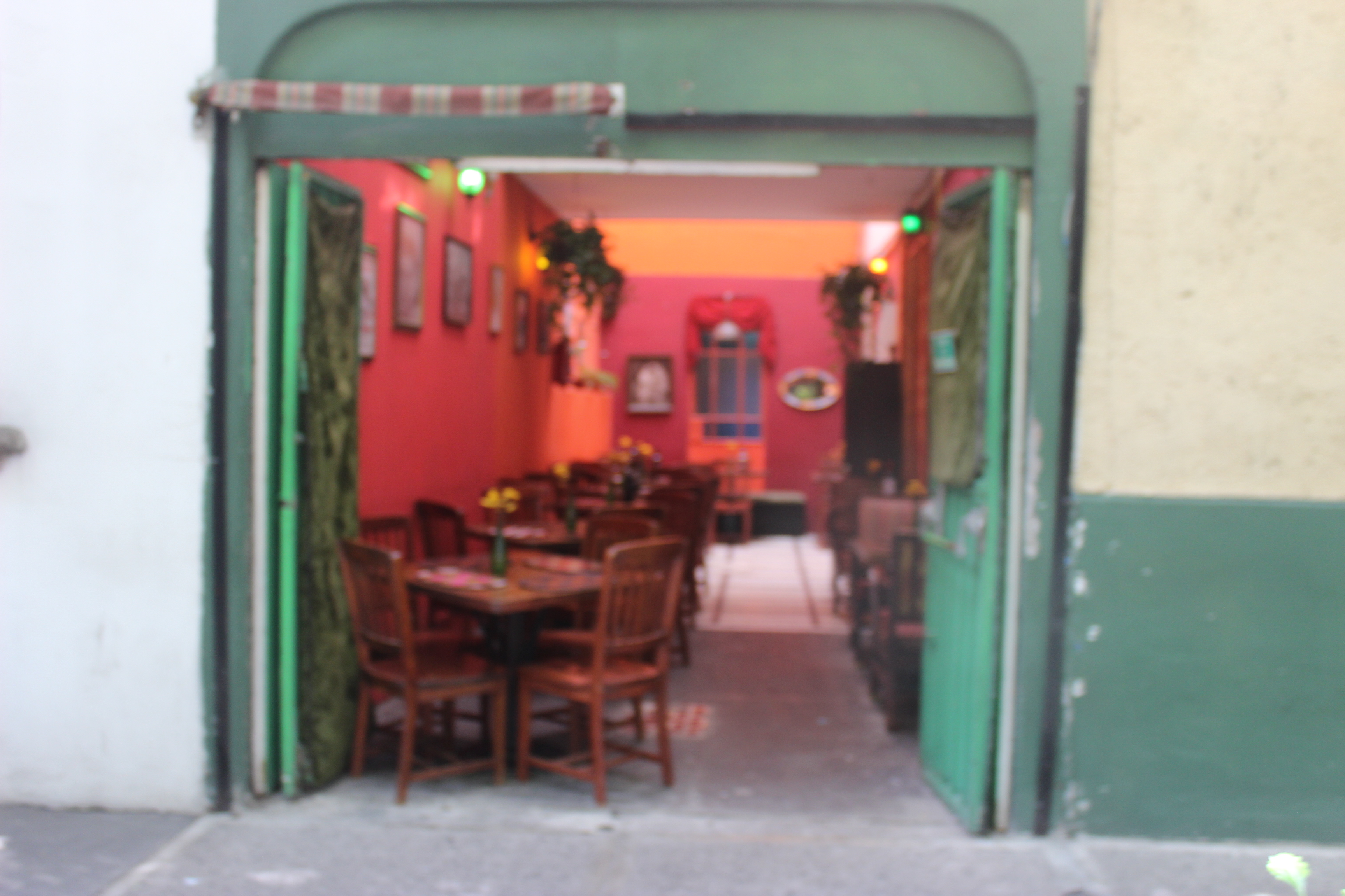 After helping a friend move, moved into a restaurant that was literally within throwing distance of the Plaza de la Republica/Monument to the Revolution. What looked like a wall, was really a way to slid into a narrow hallway and into a back opened area of high tables, stools and an open side not a front as you’d expect.